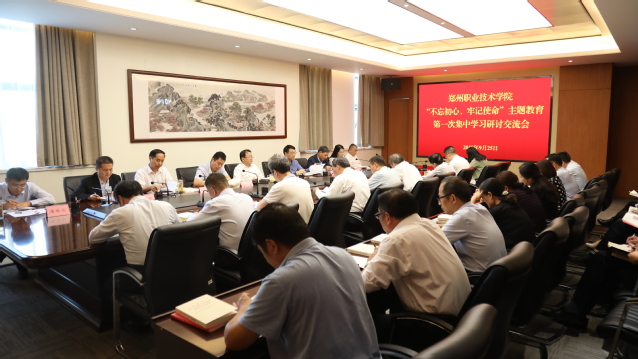 92325日,按照市委不忘初心、牢記使命主題教育領導小組部署,根據學院主題教育實施方案要求,學院主題教育第一次集中學習研讨在圖文樓404會議室舉行。集中學習研讨由學院黨委書記苗晉琦主持。學院黨委副書記、院長薛培軍,黨委副書記肖世才,黨委委員、副院長馬振華,黨委委員、副院長張建偉,黨委委員、紀委書記王紅梅,黨委委員、副院長潘維成,黨委委員、副院長張雲峰出席集中學習研讨。鄭州市委第十三巡回指導組副組長、上街區政協副主席呂現州,市委第十三巡回指導組成員、新密市來集鎮副鎮長張宏濤,鄭州三中副書記宋志華出席學習研讨交流會。黨委委員、組織部長張為民,黨委委員、宣傳(統戰)部長梁玉欣等副縣級幹部參加學習研讨交流會并發言。