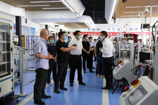 羅谷仁一行先後實地考察了我校汽車綜合實訓中心、工業機器人工程技術中心、虛拟現實工程技術中心、華為ICT學院産教融合實訓基地、生命健康研究院等國家和省市教科研平台,參觀了新校區規劃圖與綜合實訓大樓效果圖。