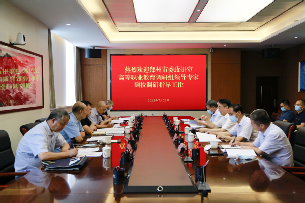 7月26日上午,市委政研室副主任羅谷仁帶隊鄭州市委政研室高等職業教育調研組一行莅臨我校調研指導職業教育工作,陪同調研的還有市委政研室三級調研員劉海原、河南民辦教育研究院執行院長王建莊、市教育局高教處主任李占領等。我校黨委副書記、校長薛培軍,黨委副書記肖世才,副校長馬振華、張建偉、潘維成等學校領導陪同調研。
