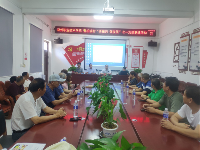 6月24日上午,我校機關黨總支、董柏坡村黨總支“話振興 促發展”七一支部聯建活動在董柏坡村黨員活動室如期舉行。我校機關黨總支書記任正傑一行及駐村工作隊、董柏坡村三委班子成員、黨員代表等參加聯建活動。活動由駐村第一書記李保民主持。