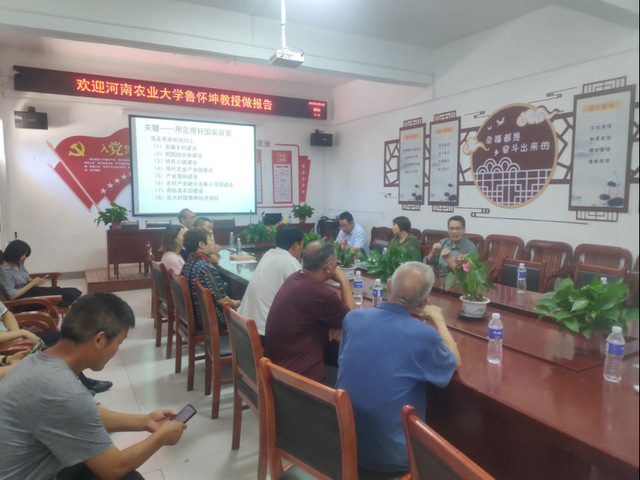 本次聯建活動,我校機關黨總支特邀請河南農業大學經管學院管理工程系系主任兼黨支部書記、碩士研究生導師魯懷坤教授為村民做鄉村振興專題輔導報告。魯教授的報告深入淺出,緊緊聚焦十九大報告以及中央一号文件精神,對鄉村振興戰略的實施背景、重大意義和主要内容等進行了認真解讀。魯教授還對以創意農業為代表的農業4.0時代的特點和發展前景進行了全面闡述,提出發展創意農業要圍繞文化傳承和創意設計方面挖掘文化内涵,讓農業産品多樣化,滿足不同層次消費者的精神需求,提高農産品的附加值,創造财富,助農增收。
